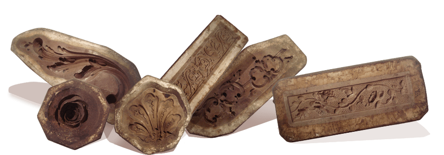Notre collection unique de moules (plus de 1000, datant pour certains du 18ème et du 19ème siècle) que nous sommes seuls à détenir, nous permet de réaliser des cadres de tous styles et de toutes largeurs, ainsi que divers éléments décoratifs.
